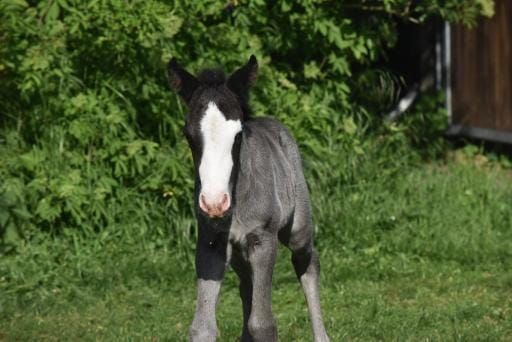 Farbe: Stutfohlen, Rappe mit Splash (event. Creme)